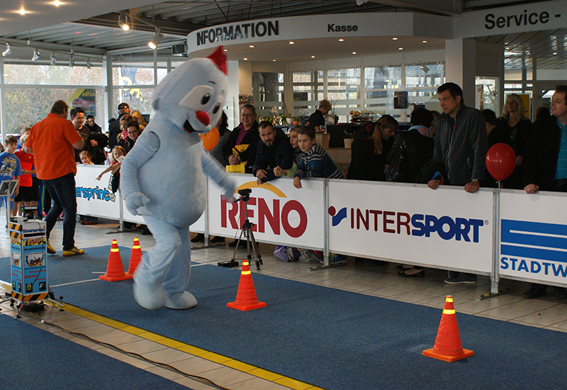 ihren Familien ins Autohaus DELLO zum großen Finale und sorgten ihrerseits für eine großartige Stimmung. Dazu trug auch das Stadtwerke-Maskottchen bei, das nicht nur bei den Siegerehrungen mitwirkte, sondern selber auch am Lauf teilnahm.